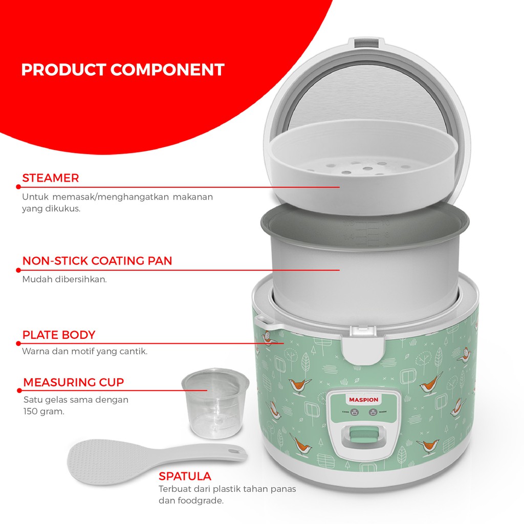 FREE ONGKIR-RICE COOKER MASPION 1'8LITER|MRJ1855-ORIGINAL