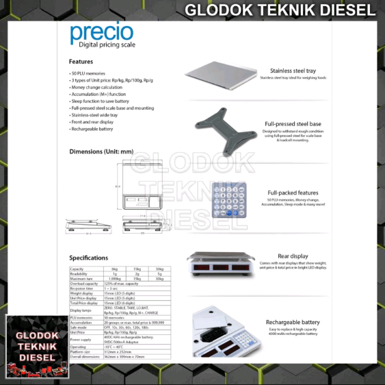 TIMBANGAN PRECIO DIGITAL KAPASITAS 30 KG KUALITAS TERBAIK