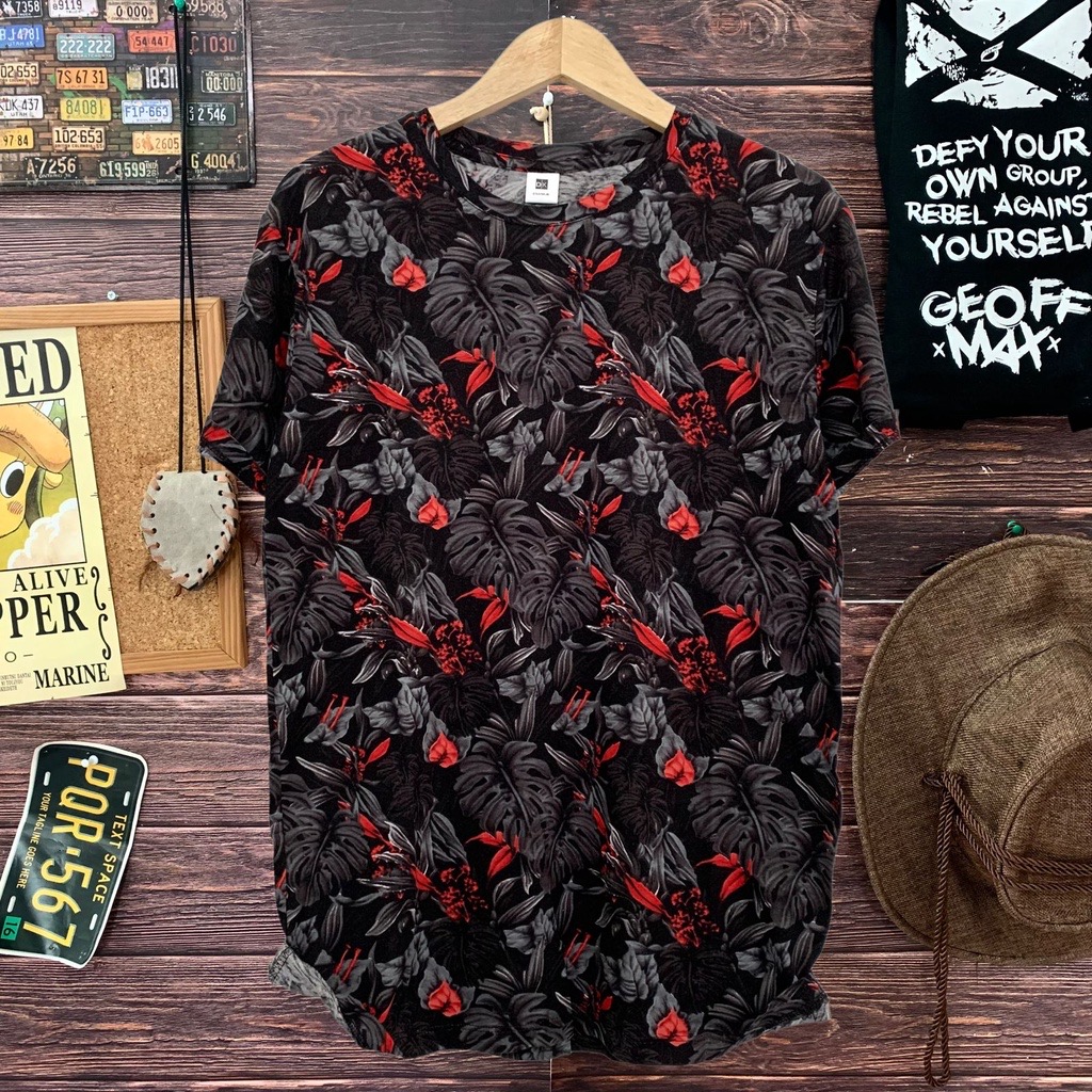 kaos distro pria RED ALOCASIA motif full printing allsize fit m/l baju kaos cowok atasan pria