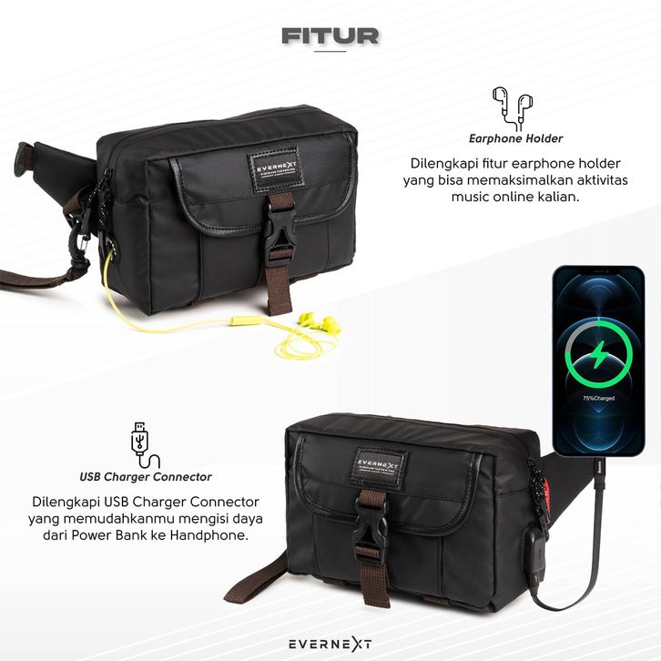 TAS SELEMPANG DISTRO PRIA EVERNEXT ANTI AIR MULTIFUNGSI 2 IN 1 SLING BAG