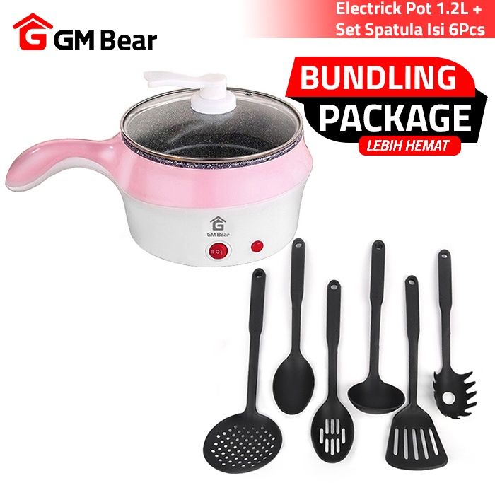 PANCI LISTRIK GM Bear Bundle Hemat 1.2L 1229 + Spatula Sutil Set 1073 - PANCI LISTRIK MULTIFUNGSI TERMURAH