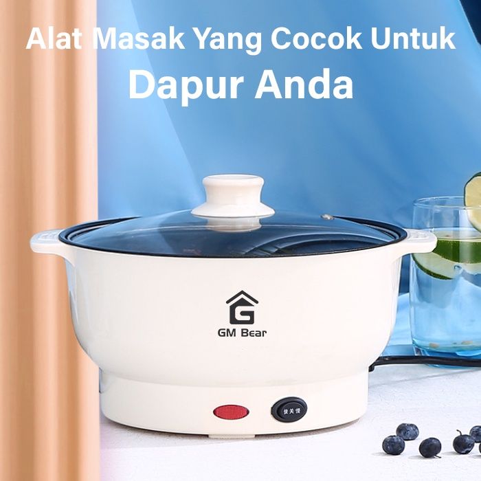 PANCI LISTRIK GM BEAR TEFLON SERBAGUNA (2 IN 1) 1225 - FREE STEA MER STAINLESS - PANCI LISTRIK MULTIFUNGSI TERMURAH cl