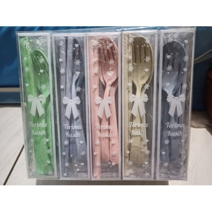 (isi 100 pcs) Souvenir Travel Set Sendok Garpu Sumpit / Centong Nasi / Mangkuk Daun (TIDAK BISA MIX)