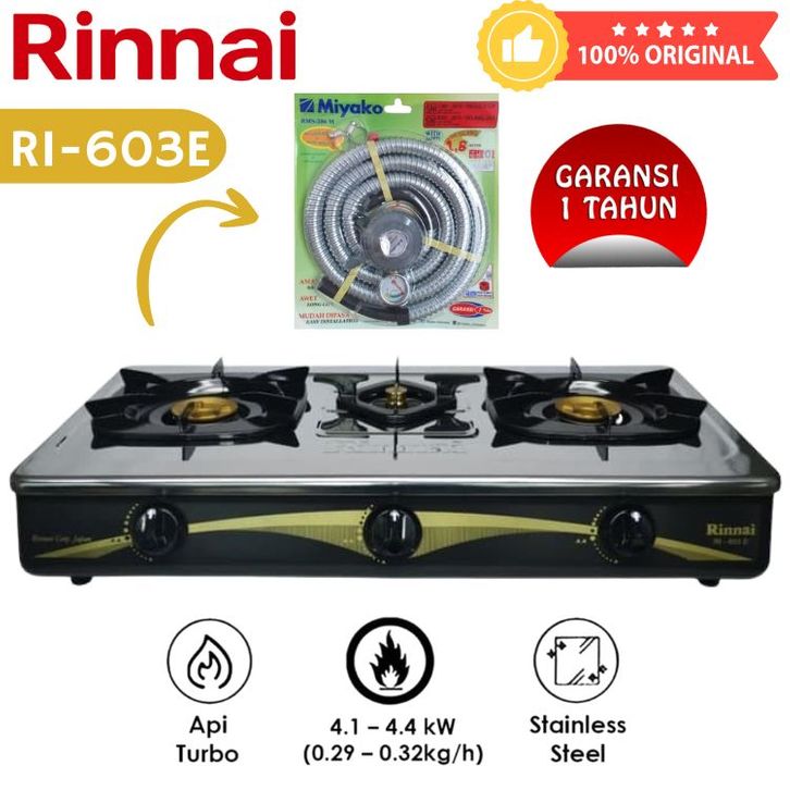 Kompor Gas Rinnai 3 Tungku RI 603E Stainless Steel Best Seller Original Official Store