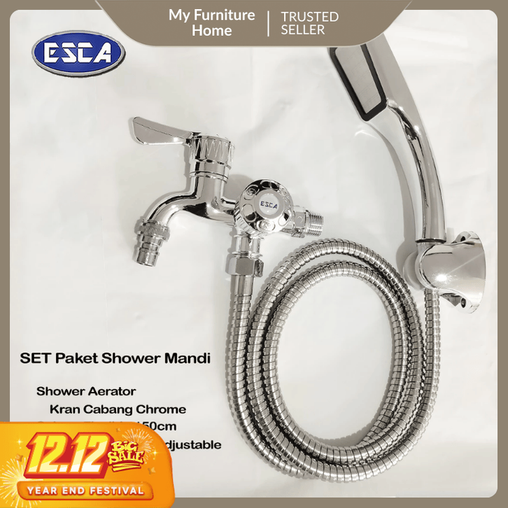ESCA Paket Komplit Kran Chrome Shower Mandi Shower Aerator