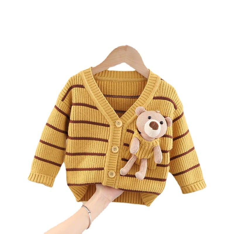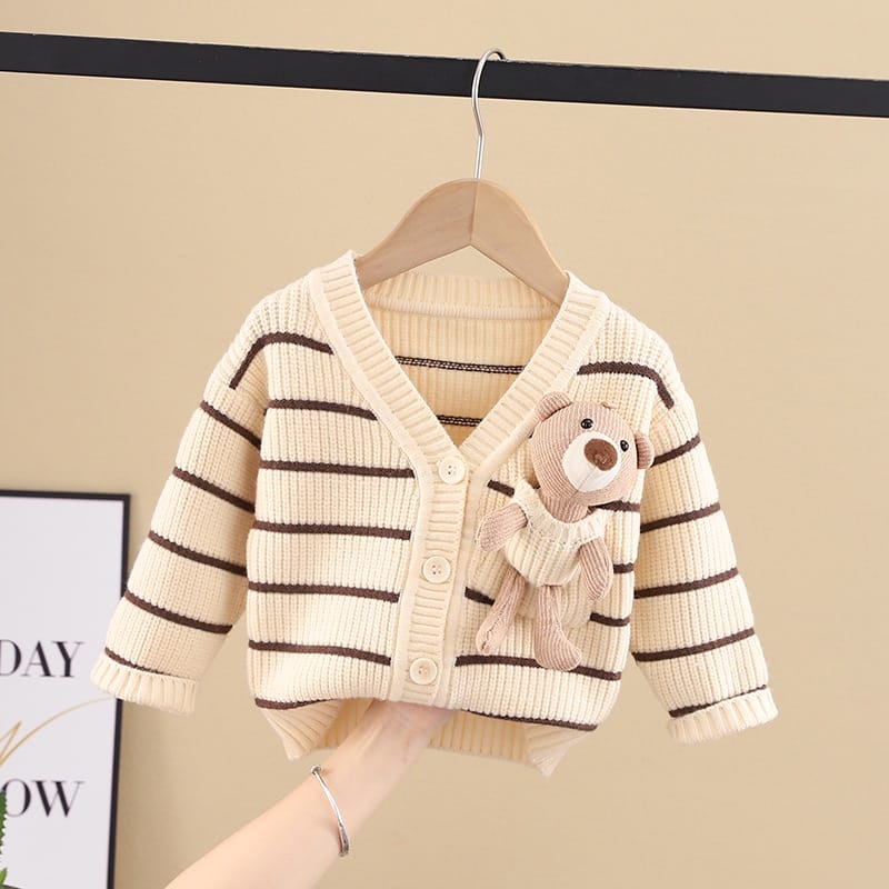 CARDIGAN BAHAN RAJUT ACRILIC ANAK TEDDY STRIP PREMIUM UMUR 1 - 5 TAHUN