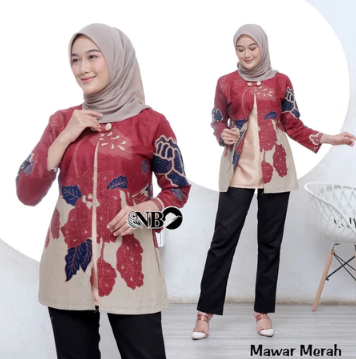 PROMO Batik wanita ASJ SA HRB026 Kenongo Kemeja Tosca Pendek