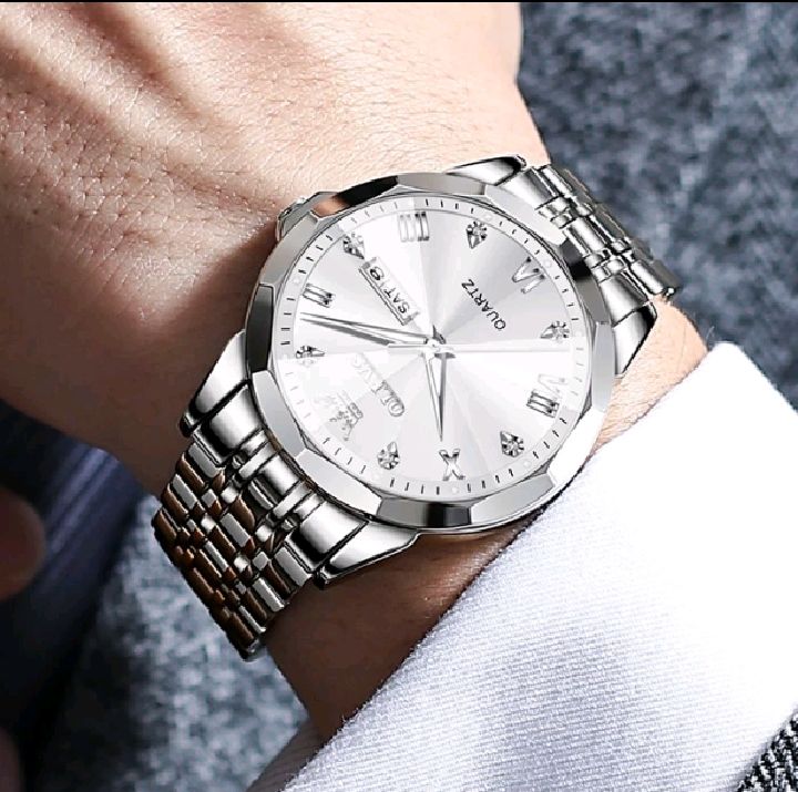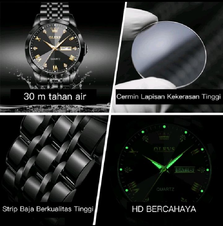 OLEVS Jam tangan pria Anti Air Original Rantai keren terbaru Mewah 2024 Putih Luxury Stainless Steel Watch Men