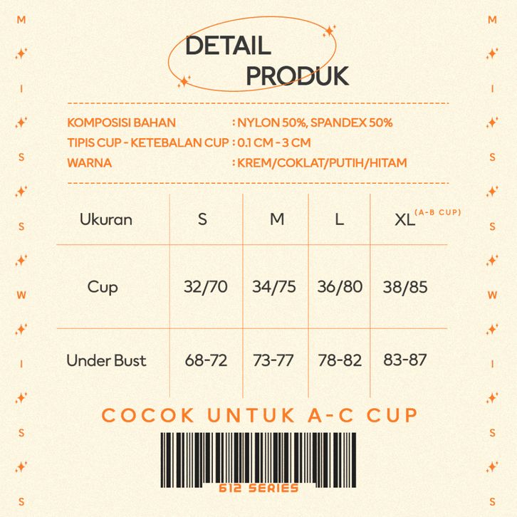 Bra Tanpa Tali Strapless Bra Tanpa Kawat Seamless Kemben Polos 612