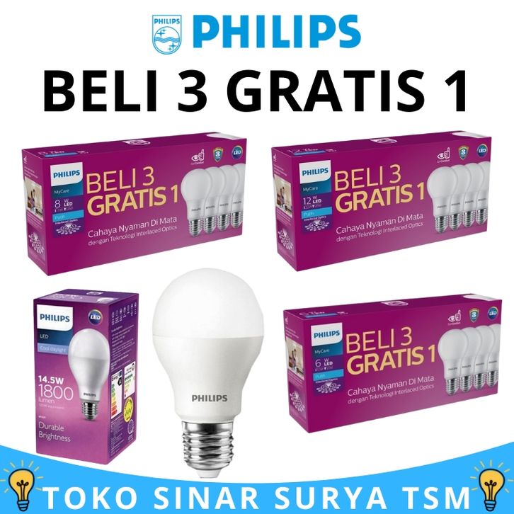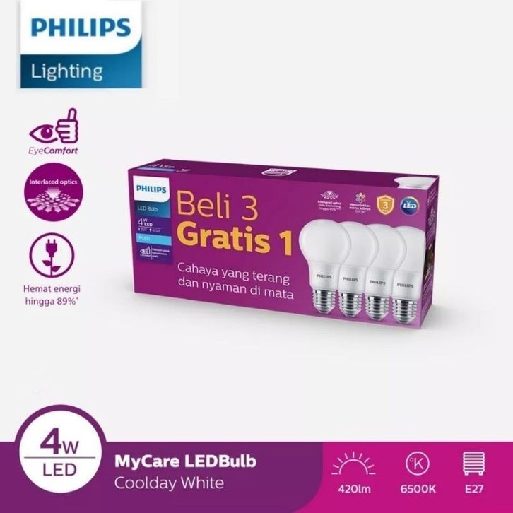 Lampu Rumah - Lampu Philips - Lampu Philips led - MultiPack MyCare LedBulb 4W 6W 8W 12W - 8 PCS 6500K Putih - DISKON 30%