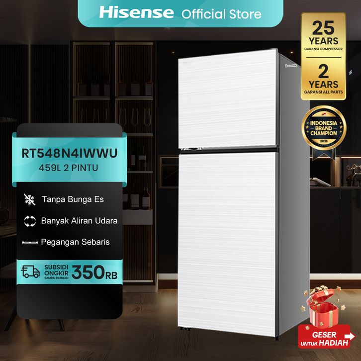Hisense Kulkas (Refrigerator) 2 Pintu Kapasitas 459L RT548N4IWWU--White Glass