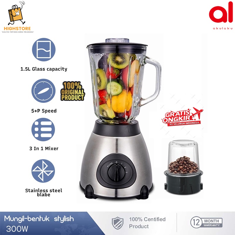 FREE ONGKIR-BLENDER PREMIIUM KACA 3IN1 STAINLESS STEEL-ORIGINAL