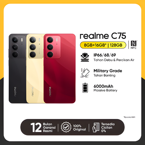 REALME C75 8+16GB/128GB BATERAI 6000MAH IP68 WATER RESISTANCE HANDPHONE SMARTPHONE ANDROID HP TERBARU 2025 MURAH