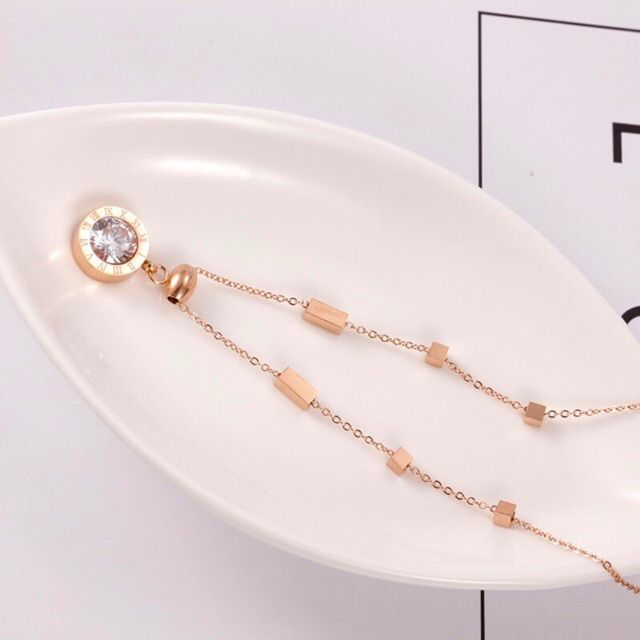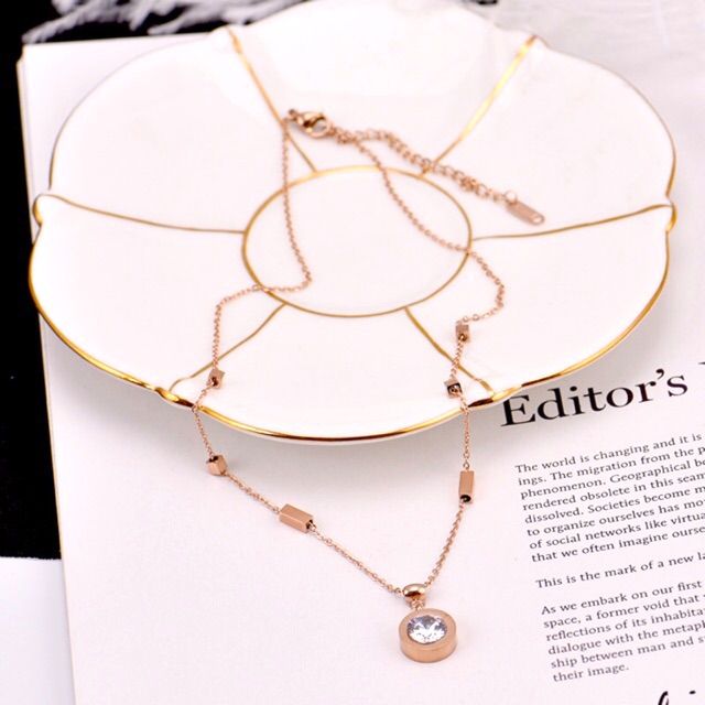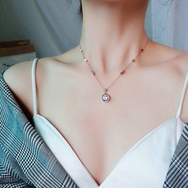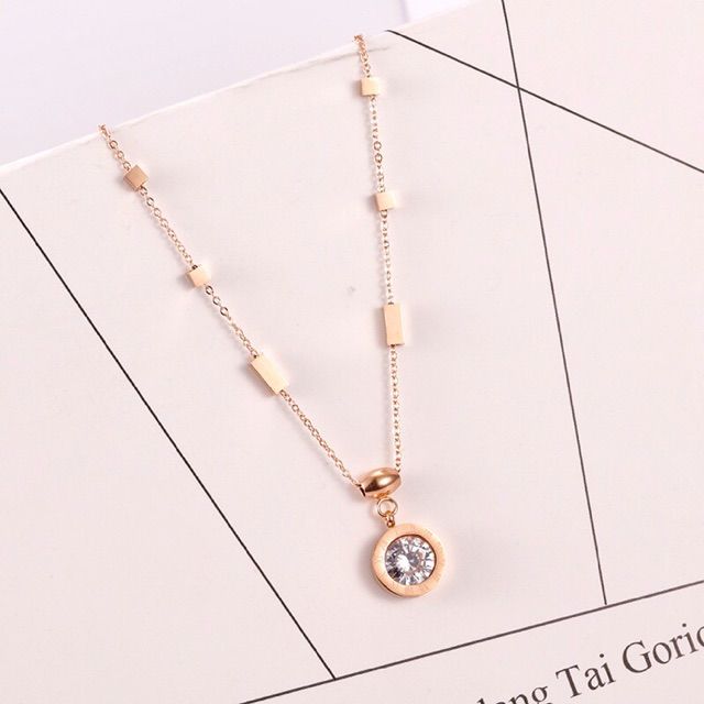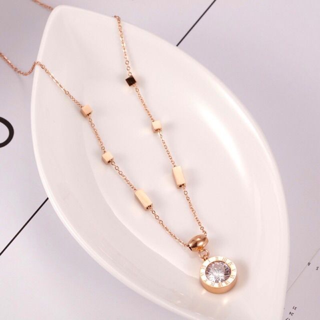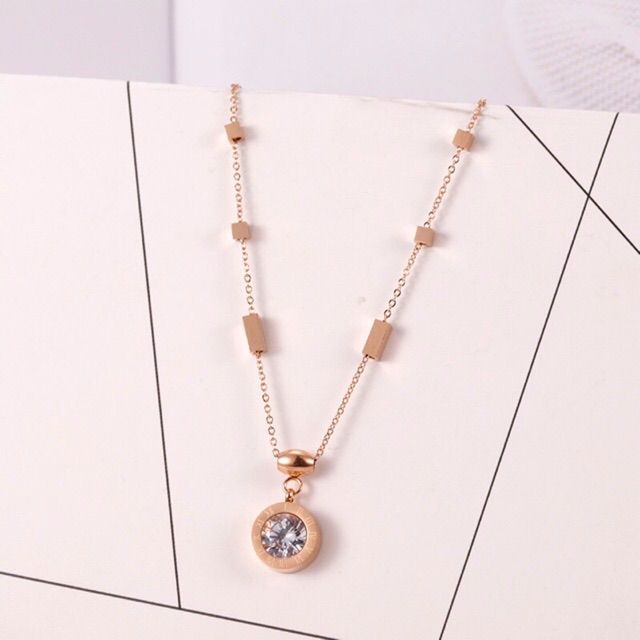 283# LS Kalung Wanita titanium lmodel liontin Permata Bulat