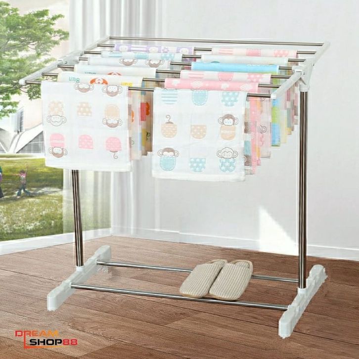 Rak Jemuran Handuk Stainlees Gantungan Handuk Jemuran Handuk Lipat Serbaguna Jemuran Baju Bayi Menara 3 Tingkat GOSHOP88