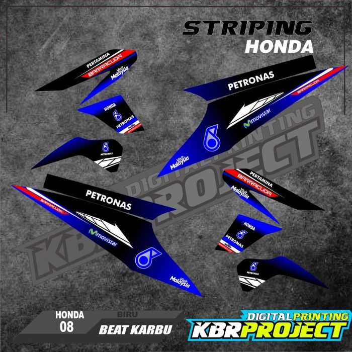 Sticker Decal Motor BEAT KARBU STIKER MOTOR STRIPING VARIASI BEAT KARBU 08 PETRONAS - Biru