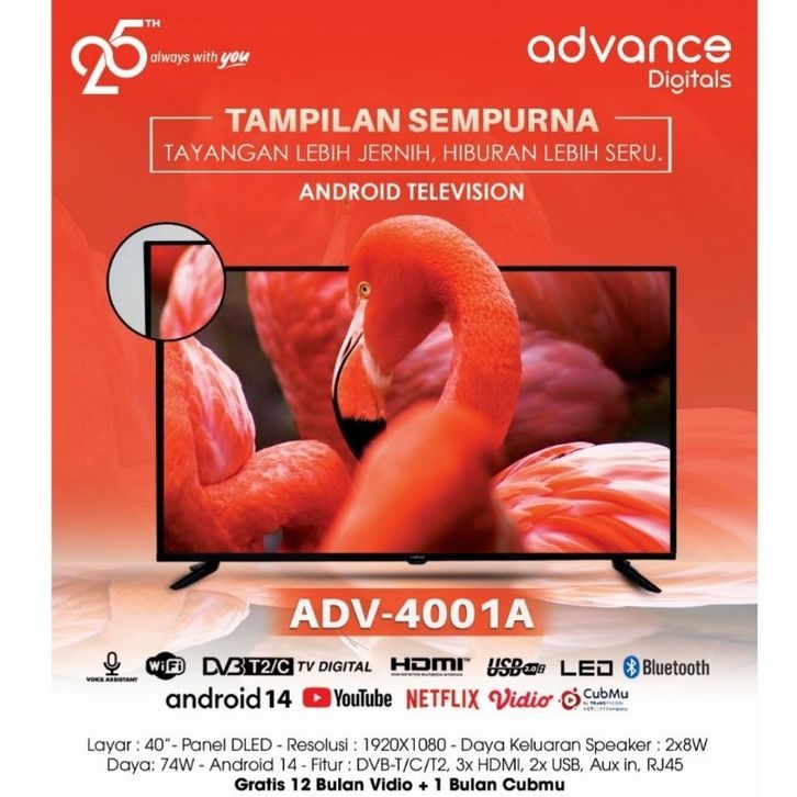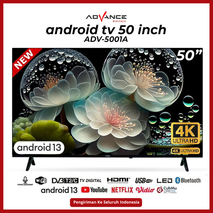 TV ADVANCE SMART ANDROID 50 INCH LED DIGITAL 42 32 24 IN FRAMELESS TELEVISI WIFI USB FULL HD PANEL LG MURAH