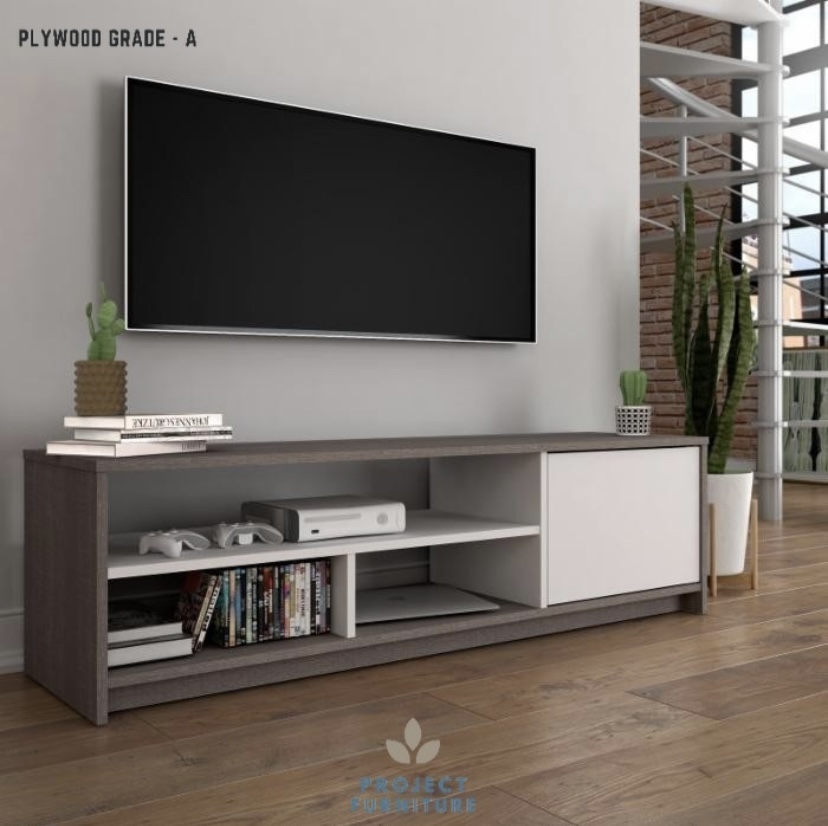 Meja TV / Rak TV Minimalis Modern 120 Cm Maks TV 65" Putih Abu Coklat Tua Hitam