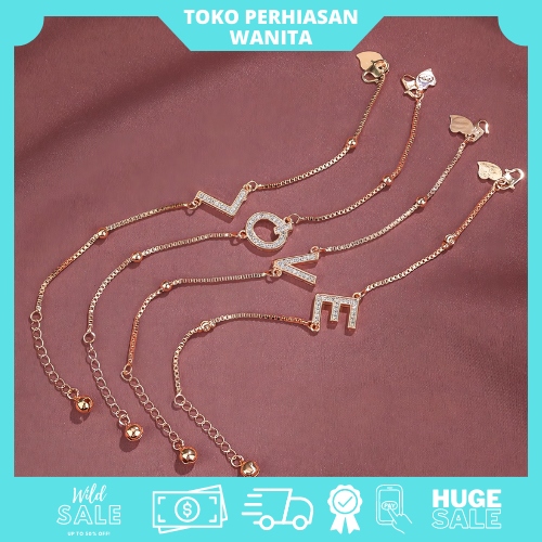 GELANG TITANIUM ANTI KARAT GELANG HURUF MEWAH ROSE GOLED GELANG HURUF INISIAL FASHION AKSESOARIS WANITA D117