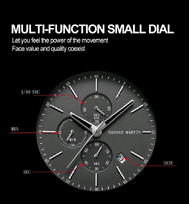 HANNAH MARTIN Jam Tangan Pria 100% Original Tahan air Cowok kronograf Quartz Analog Laki 109