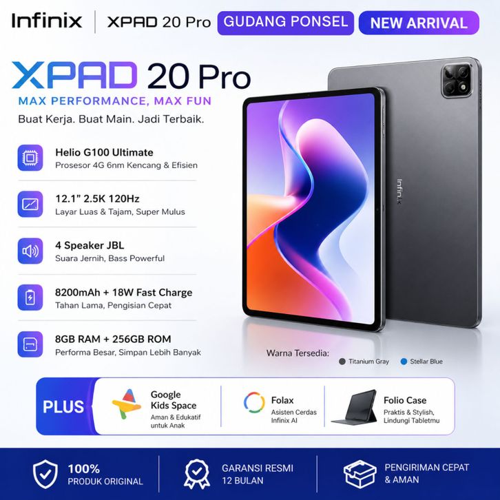 Tab Infinix XPAD 20 8/256GB Mediatek G100 Ultimate - 12" 2K 90Hz - 8000 mAh - 4G LTE
