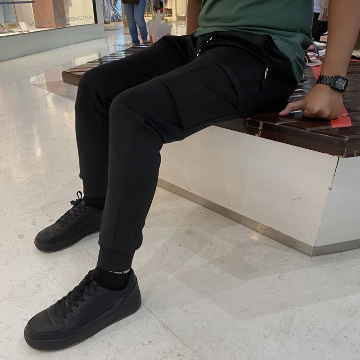 Celana Jogger Pria Celana Training Celana Cargo Black Nobrand Bahan Misty Premium