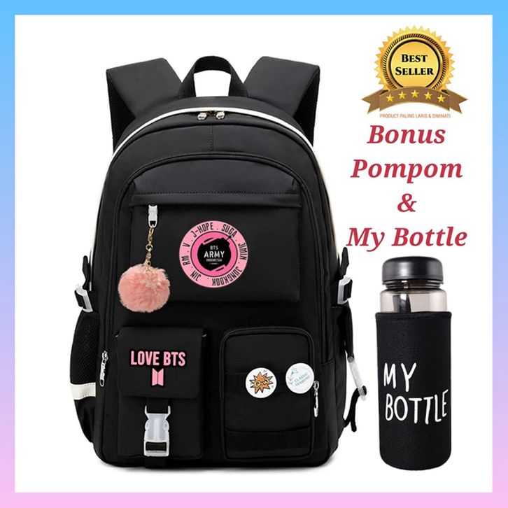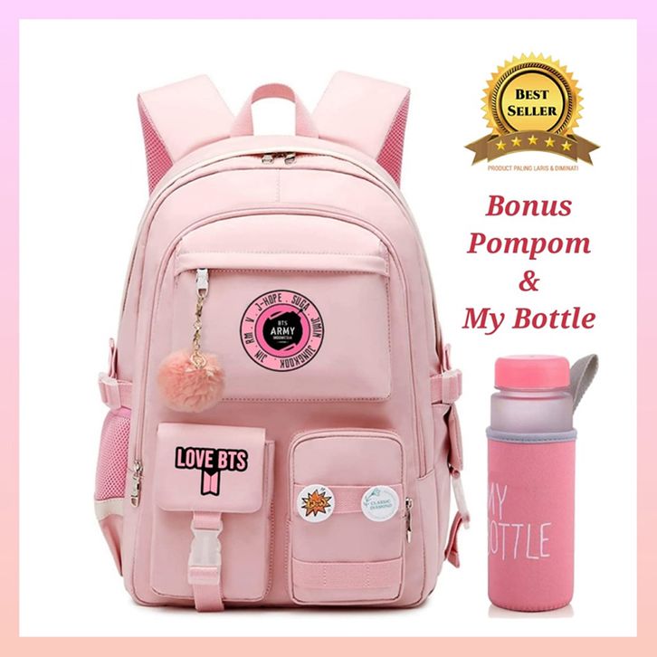 Tas Ransel Perempuan Untuk Sekolah Sd Smp Sma L0v3 B3t3s CX1 Free Gantungan Dan My B0ttl3 Lucu