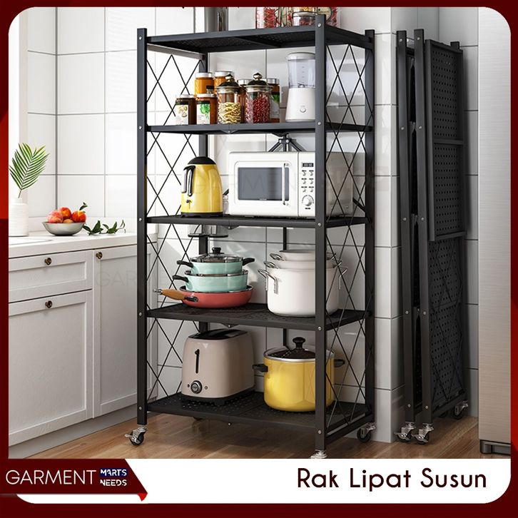 [Star] Rak Dapur Lipat Serbaguna / Rak Besi Susun 5 Tingkat / Rak Penyimpanan Susun Multifungsi / Rak Dapur Tanpa Baut