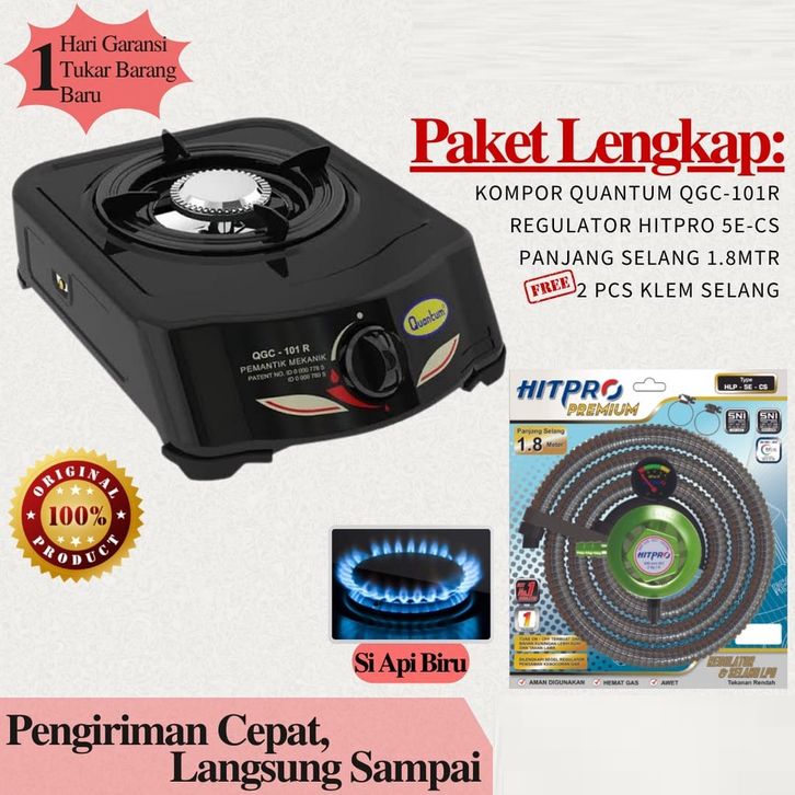 Paket Kompor Gas 1 Tungku bonus selang regulator / QUANTUM QGC-101R + 5ACS / MIYAKO KG201C + 5ACS