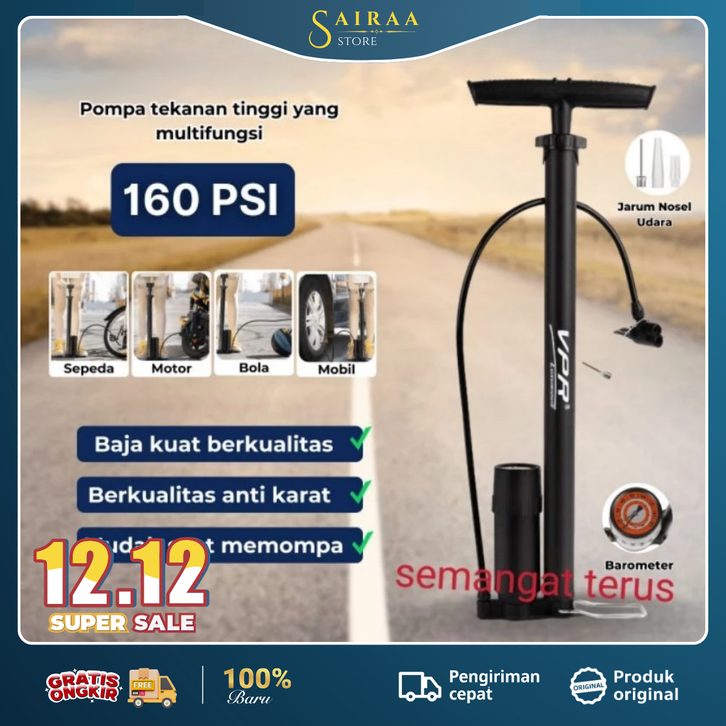 VPR Pompa Angin Ban Sepeda Dan Motor Kompa Sepeda Meter Tekanan Manual Dual Pentil Alloy