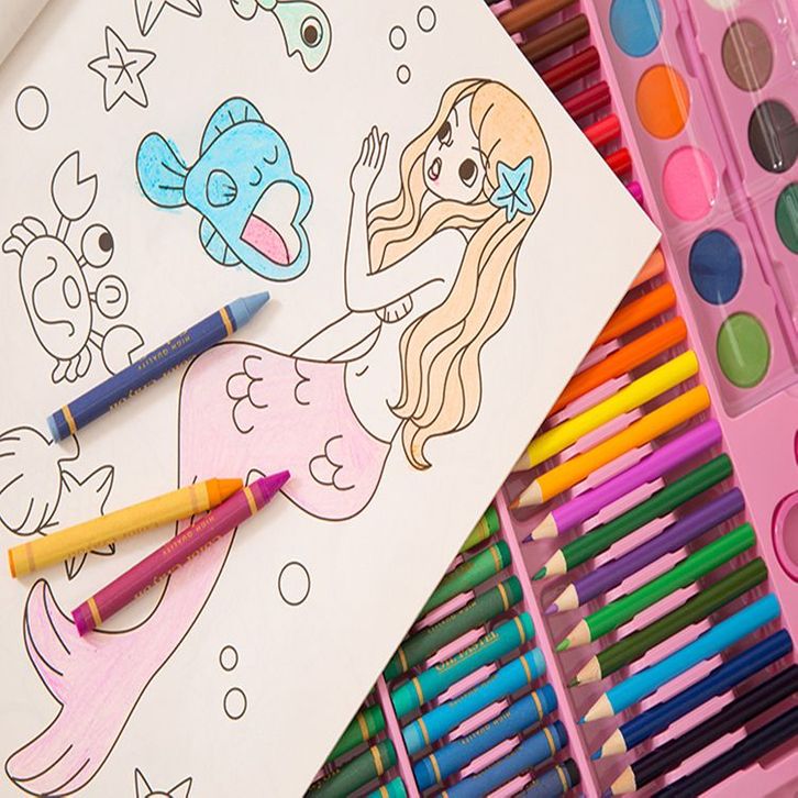 Stationary Set isi 86 pcs Pensil Crayon Warna Cat Air / Perlengkapan Sekolah Menggambar Anak / Alat Warna