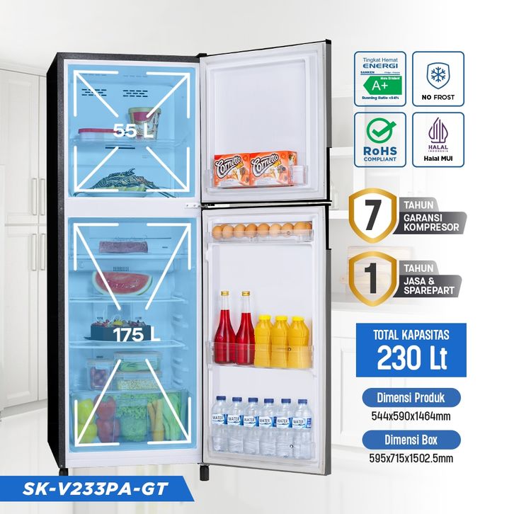 KULKAS 2 DUA PINTU SANKEN 230 LITER NON INVERTER REFRIGERATOR TANPA BUNGA LEMARI ES 170 L DP JUMBO TERBARU FREEZER