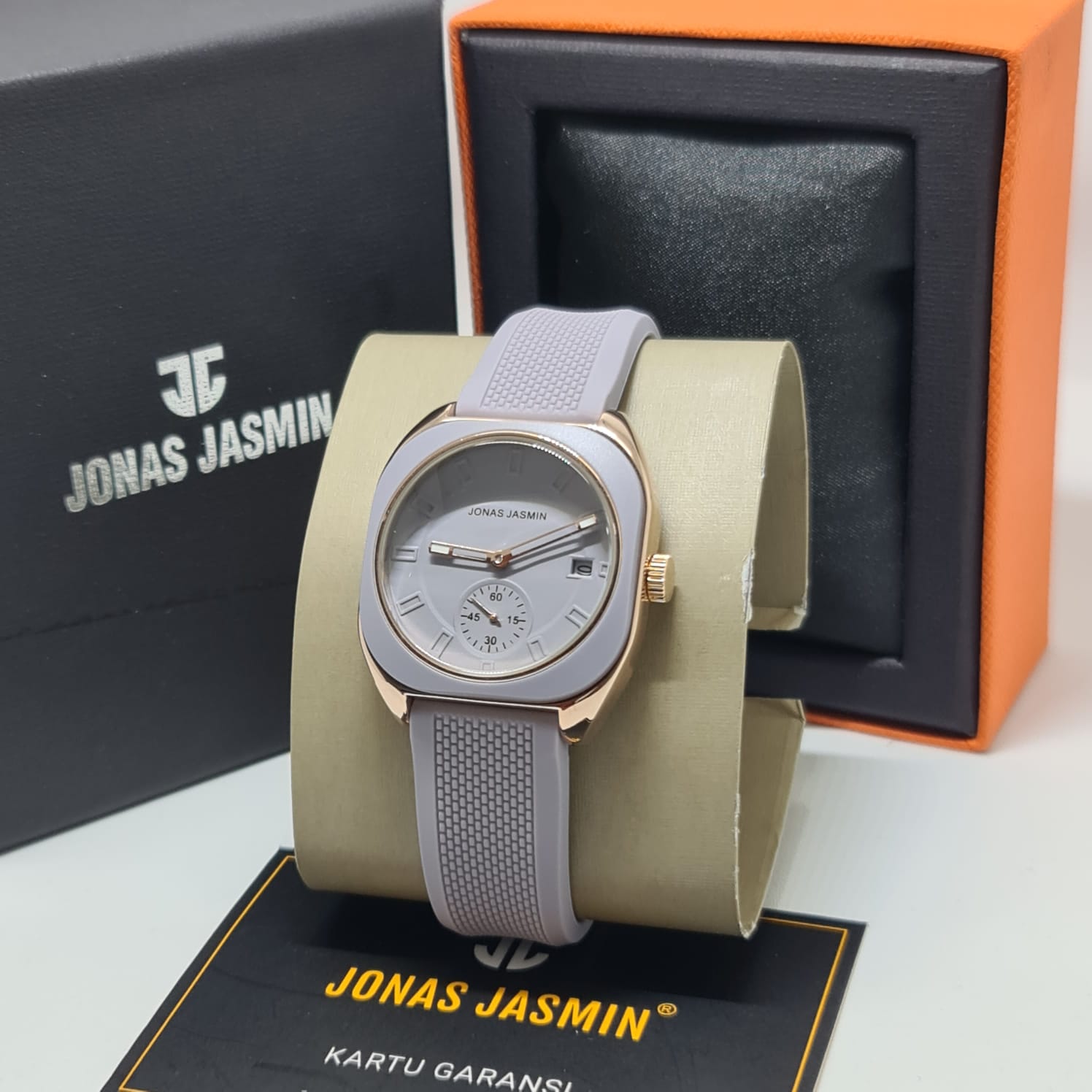 Jam Tangan Wanita Jonas Jasmin Original Jj3147Sv Chrono Detik Tanggal Aktif Tali Rubber Free Box Original, Kartu Garansi