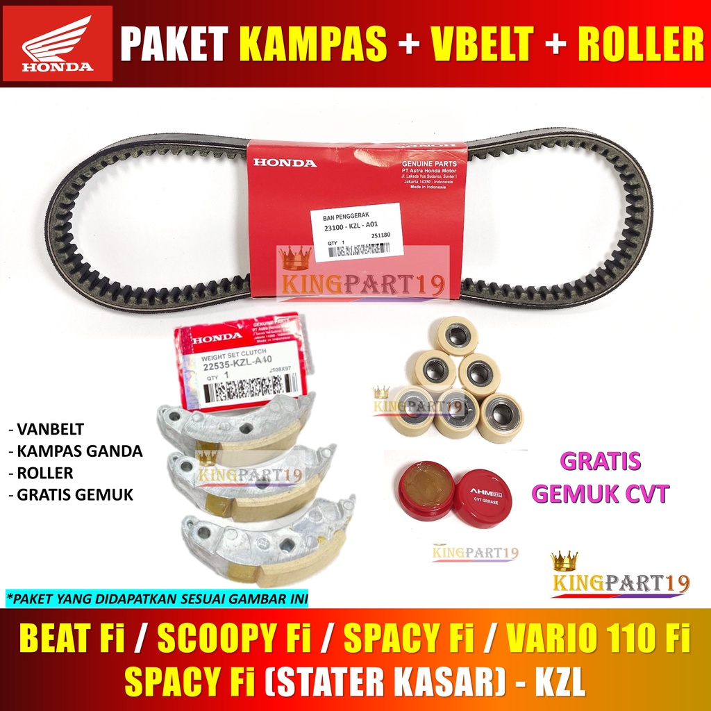 PAKET KAMPAS GANDA VANBELT ROLLER BEAT FI SCOOPY FI VARIO 110 FI SPACY FI KZL KAMPAS GANDA ROLER