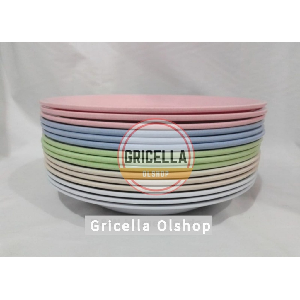 TERBARU 12 PCS PIRING MAKAN CANTIK WARNA PASTEL BAHAN MELAMIN TEBAL FOOD GRADE 23CM