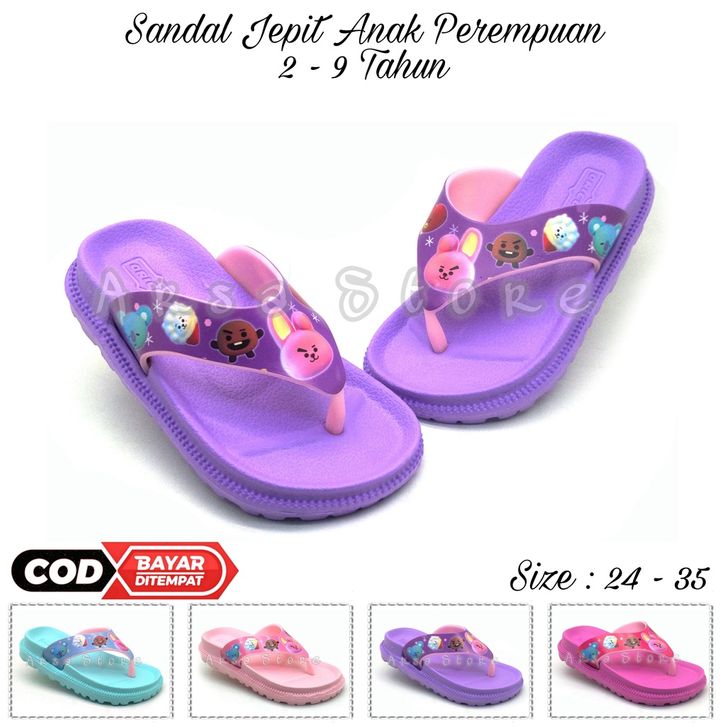 Sendal Jepit Anak Perempuan Umur 2 - 9 Tahun / Sandal Lucu Anak Cewek Karakter BTS BT21