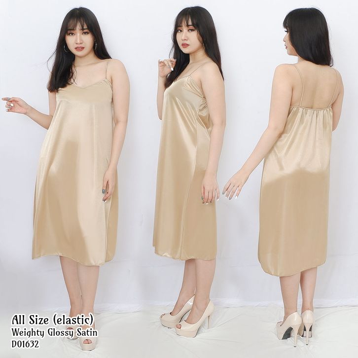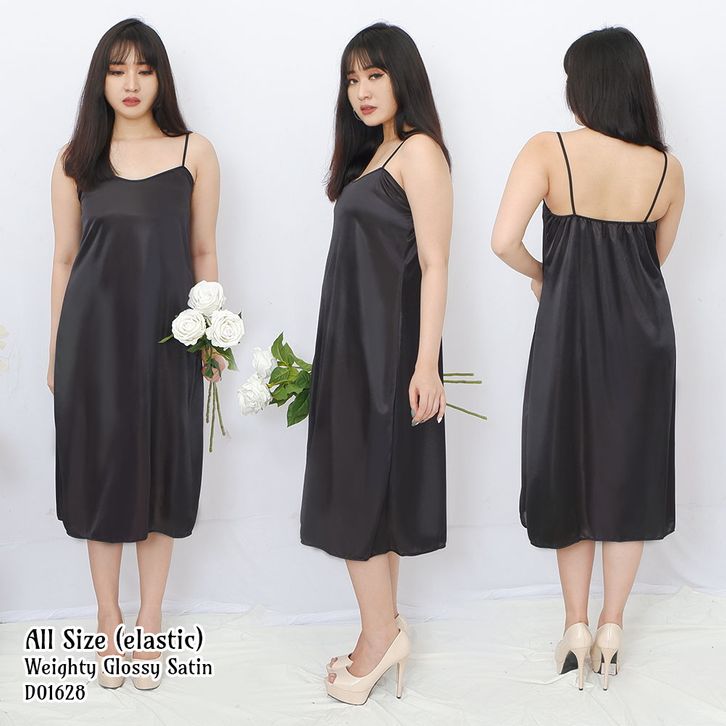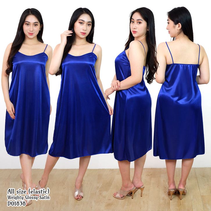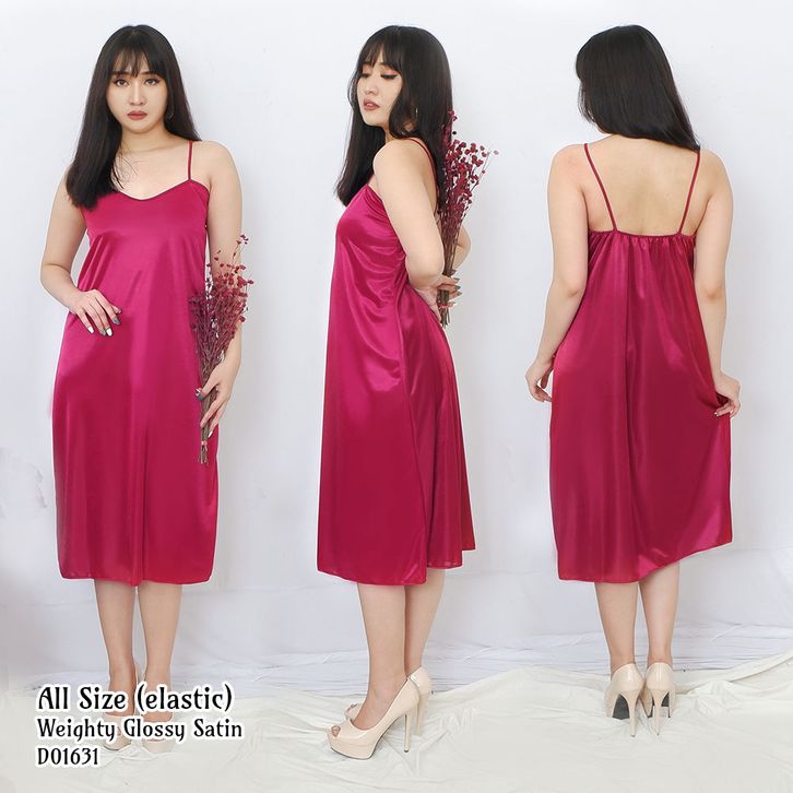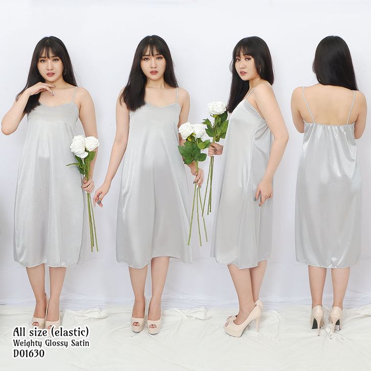 FOLVA dress tanktop wanita daster baju tidur satin bawah lutut all size