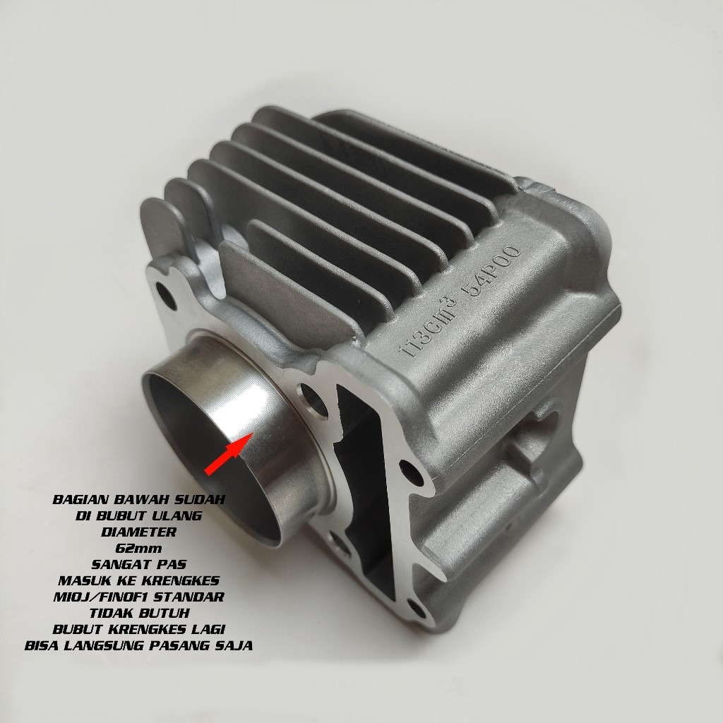 BLOK SEHER BORE UP 59MM MIO J GT FINO FI 115 XRIDE SOUL GT / BLOCK MESIN STANDART 54P SET PISTON BOREUP 59