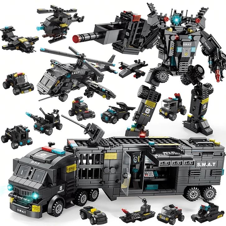 Bricks Block Polisi Robot 700 Pcs Lego Mainan Anak Laki Laki 1 3 6 Tahun Perempuan Technic Mobil Besar Bunga City