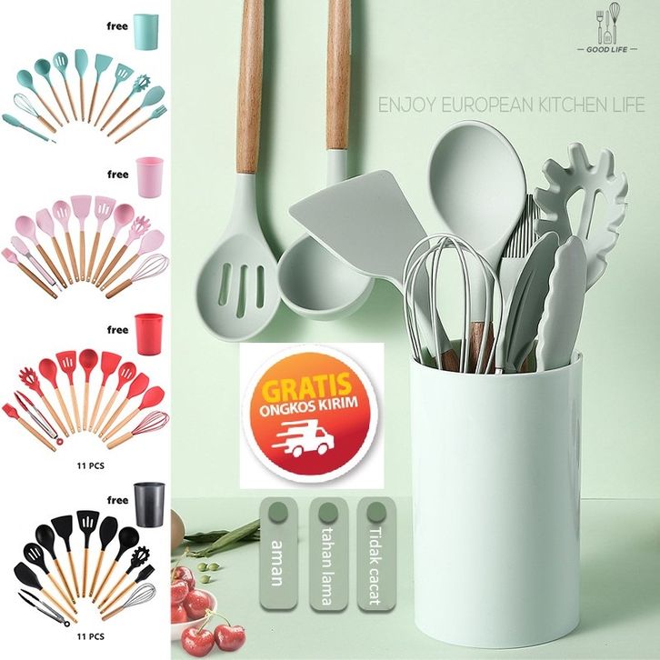 (BEBAS ONGKIR) TERBARU Set Spatula Silikon 12pcs / Alat Masak Sehat Tahan Panas Silicone Kitchen tools TERMURAH TERLARIS