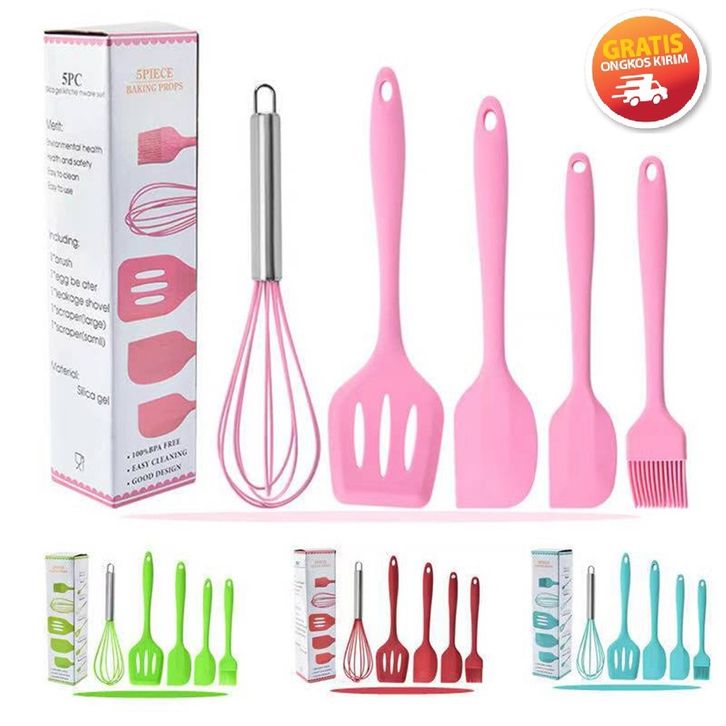 (BEBAS ONGKIR) TERBARU Set Spatula 5 Pcs Peralatan Masak Sutil Silikon Non Stick Cooking Tools Kitchenware Spatula