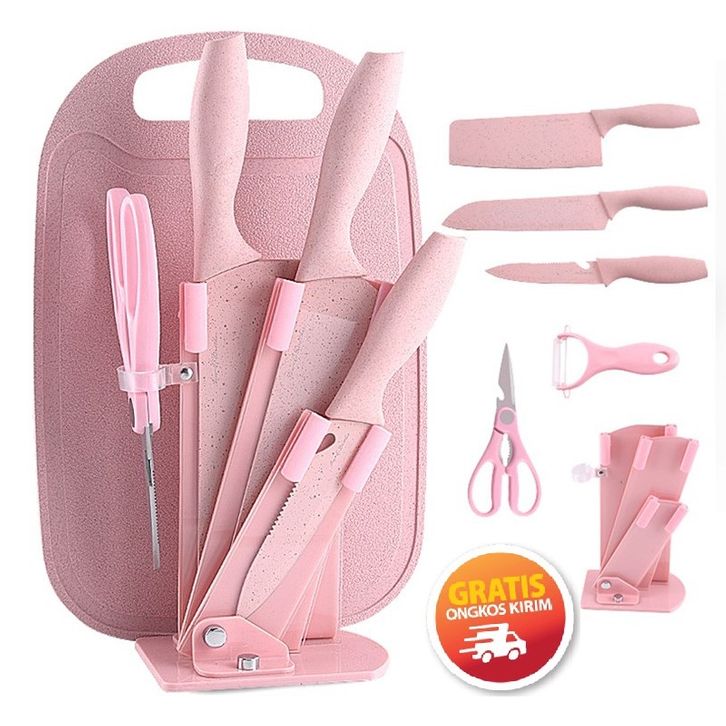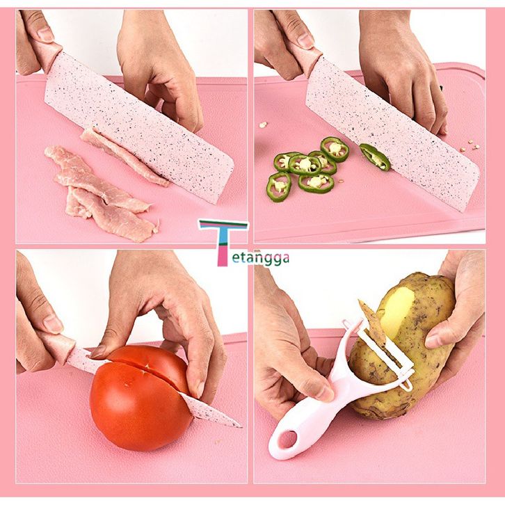 (BEBAS ONGKIR) TERBARU 7IN1 Pisau + Talenan Masak Set Bahan Keramik Best Quality Pisau Dapur TERMURAH TERLARIS