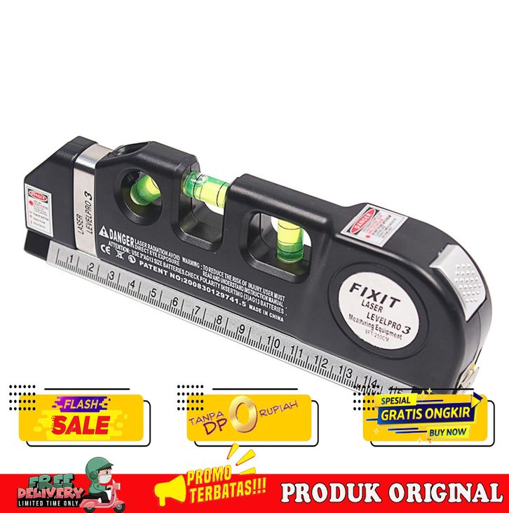 DISKON/LASER WATERPASS ALAT PENGUKUR KEMIRINGAN DAN JARAK 3 IN 1 PENGGARIS METERAN KERAMIK SIKU BANGUNAN
