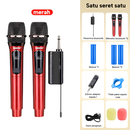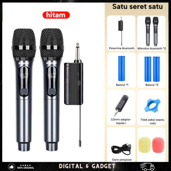 MIC WIRELESS Karaoke SHURE 302 Mic WIreless Bluetooth Microphone Youtuber Ashley Clip On Hp Shure Advance Terbaru