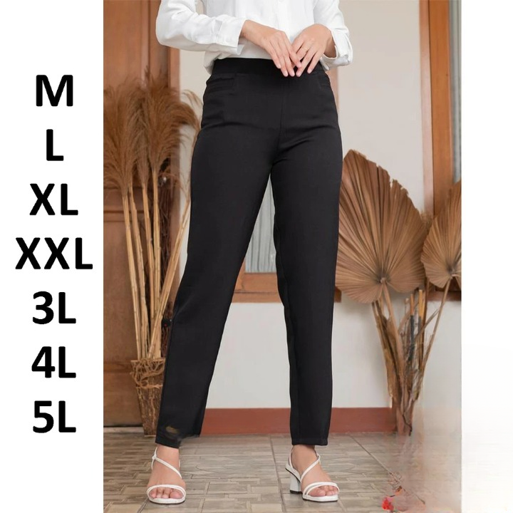 CELANA KERJA WANITA JUMBO PREMIUM KATUN WOL PANJANG PINGGANG FULL KARET STRECTH FORMAL KANTOR BIG SIZE TERMURAH