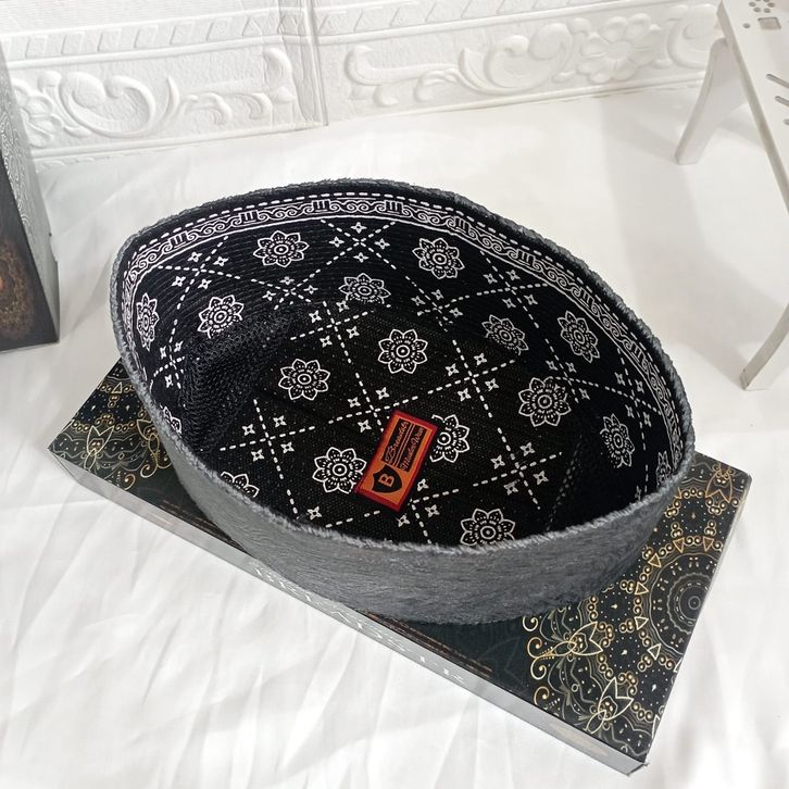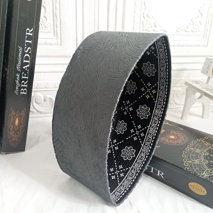 Peci Songkok Kopiah Terbaru merk BREADSTR Warna ABU AC Motif Tinggi 9cm Elegan Bahan Halus dan Lembut Songkok Kopiah Hit