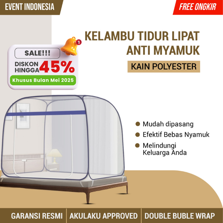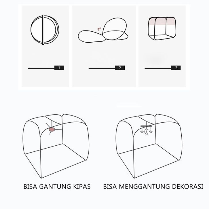 Kelambu Tidur Bisa Lipat aman nyamuk Kelambu Pelajar Bentuk Kotak Ukuran 150x200 Cm 180x200 Cm Bahan Kain Polyester