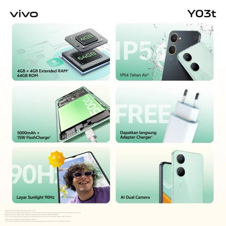VİVO Y03T 4GB+64GB GARANSI RESMI
