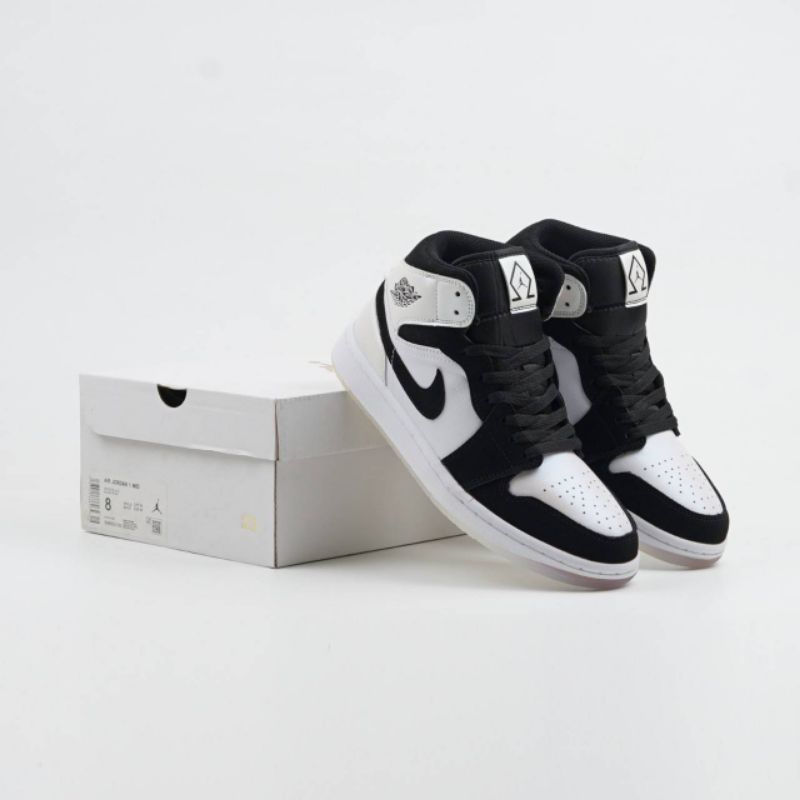 [Star] Sepatu Jordan Original Sneakers Air Jordan 1 Mid White Black Kualitas Import Sepatu Casuals Best Seller