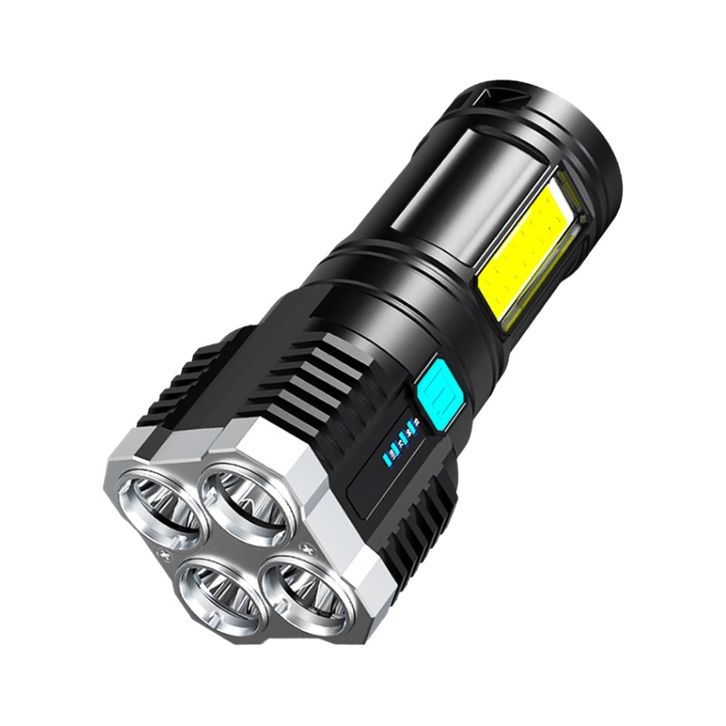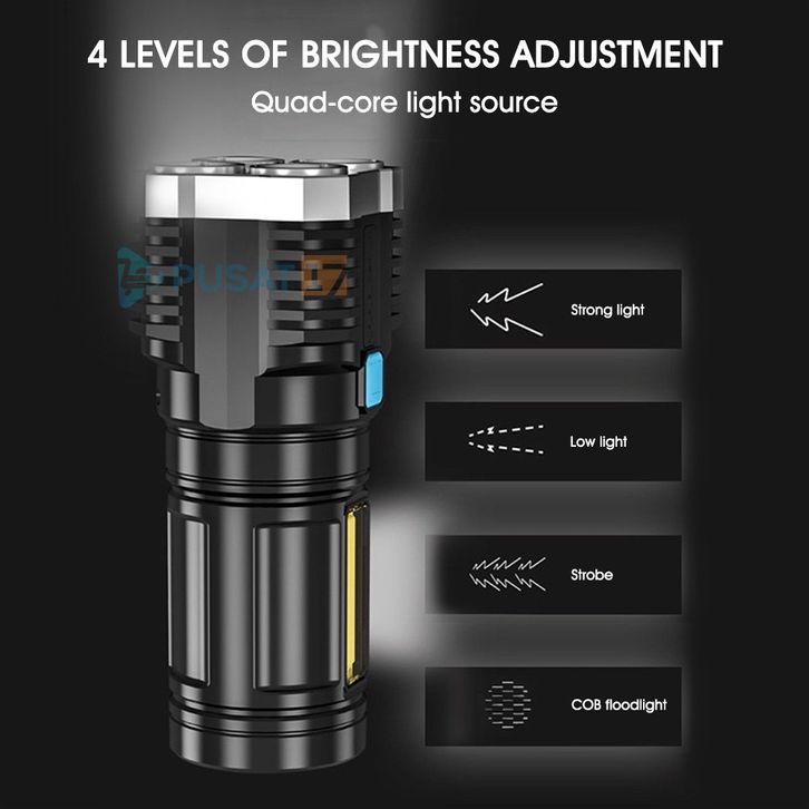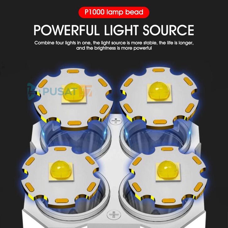 Senter LED 4 Mata Super Terang Rechargeable Bisa Cas Ulang USB Senter Jarak Jauh Camp Emergency Senter Darurat Terang
